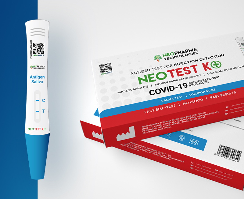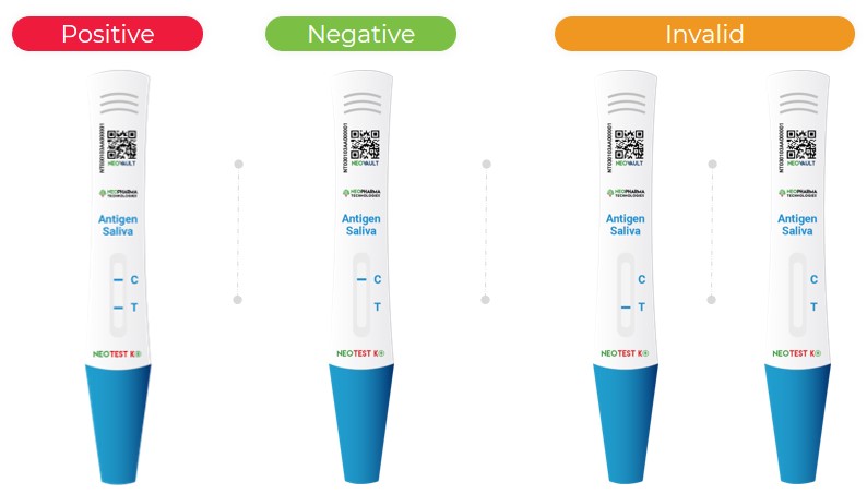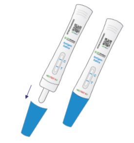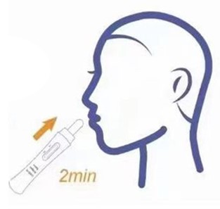 Put the absorbent tip of the test card into the mouth (all the absorbent tip is pressed under the tongue). Take out the test card after 2 minutes